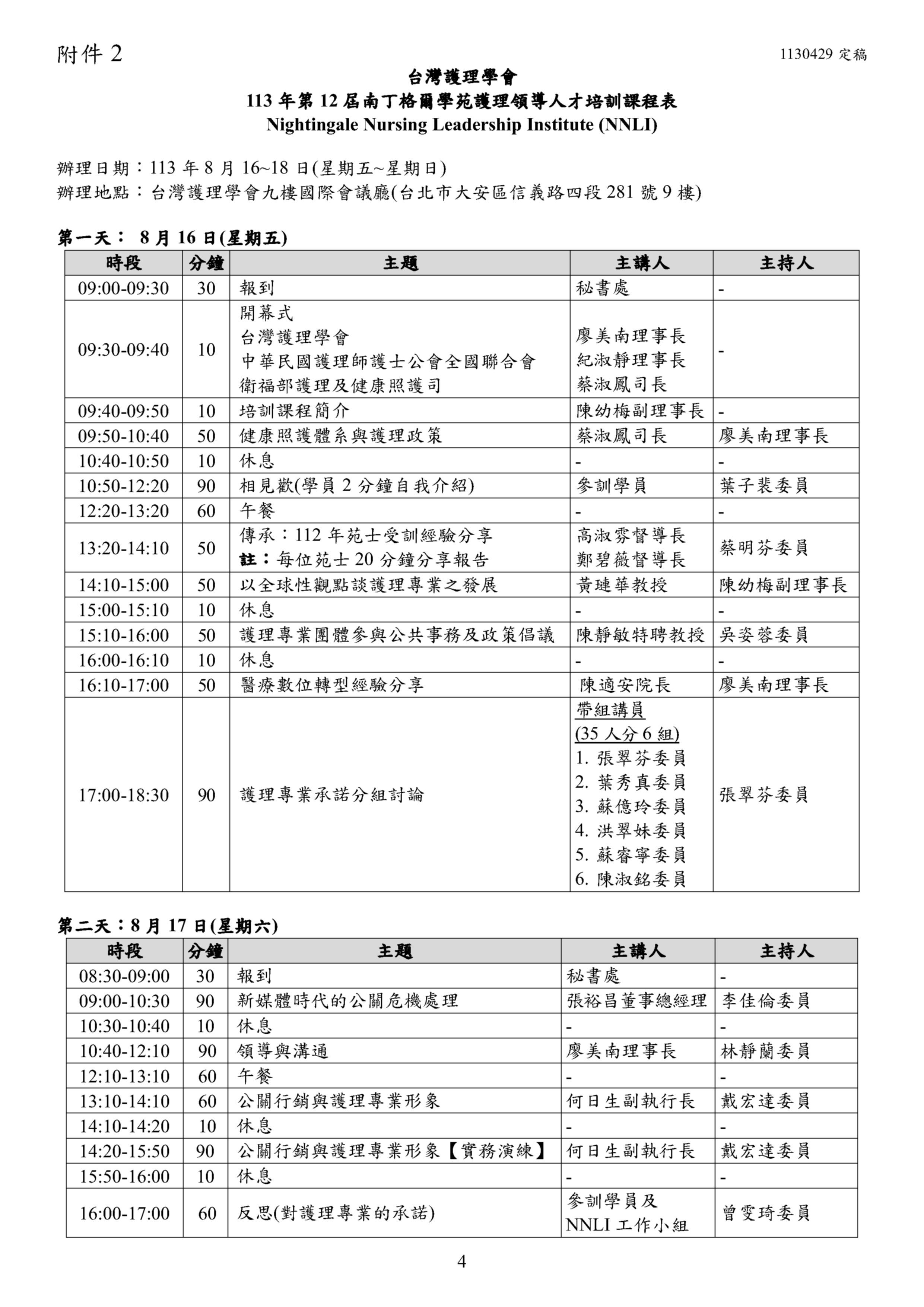 轉知台灣護理學會舉辦113年度第12屆「南丁格爾學苑護理領導人才培訓」